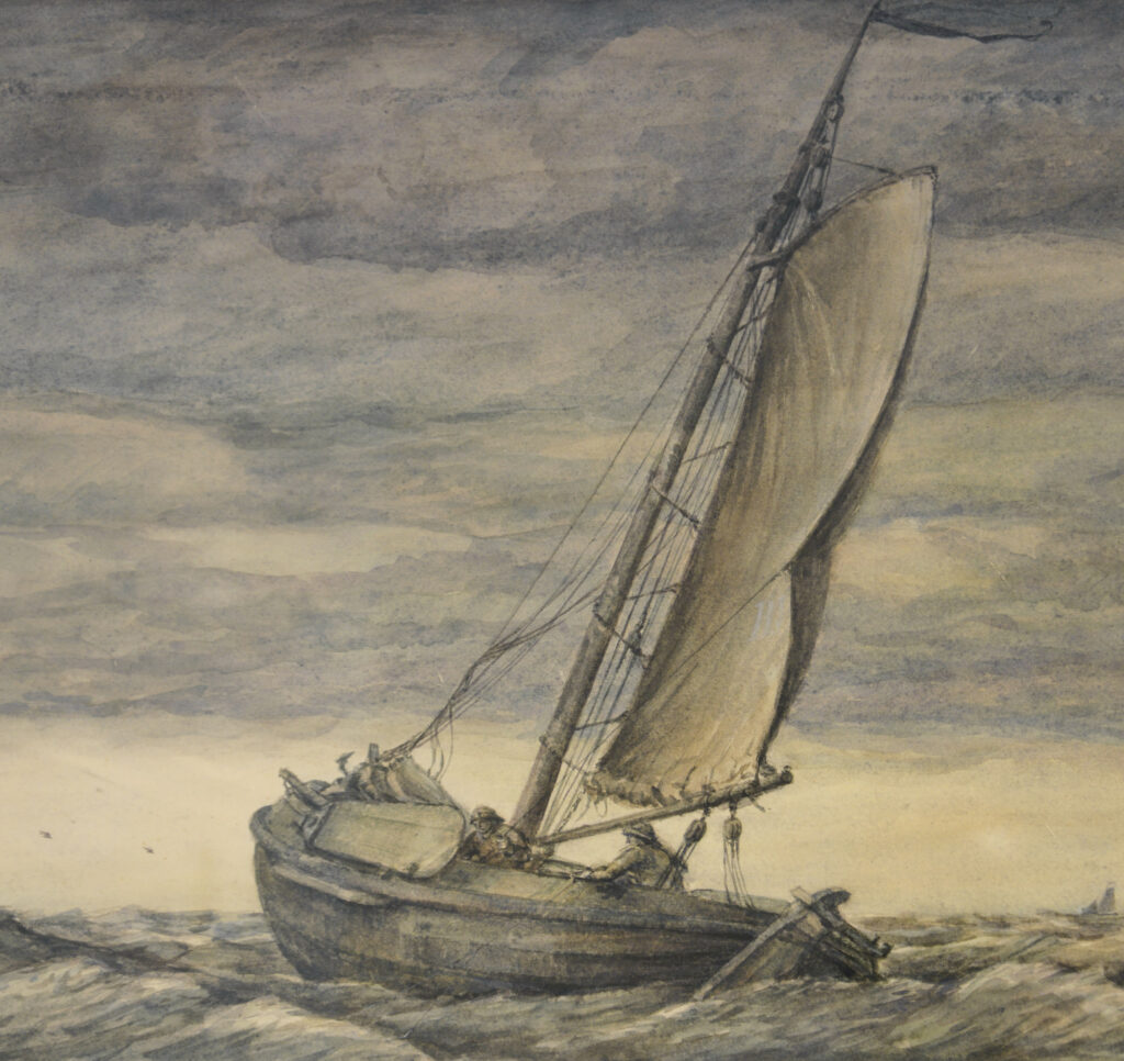 Alle vistechnieken van de Spakenburgse vloot gevangen in tien aquarellen. Ooit in de jaren 70 in opdracht van de gemeente Bunschoten gemaakt door Peter Dorleijn. Vanmiddag opent de tentoonstelling met deze aquarellen en zijn collectie voorwerpen in Museum Spakenburg. Beeld ©Peter Dorleijn – foto: nwevorm2024